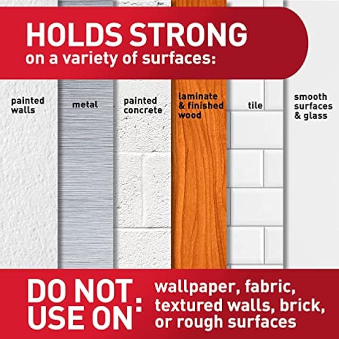 Suitable for a variety of smooth surfaces: Wall hanging strips are suitable for a variety of smooth surfaces, including painted walls, finished wood, painted concrete slime blocks, laminate, glass, metal, and ceramic tile. { 1 } { 1 } { 1 } { 1 } { 1 } { 1 } } { } { { } { } { } { { } { } { { } { } {