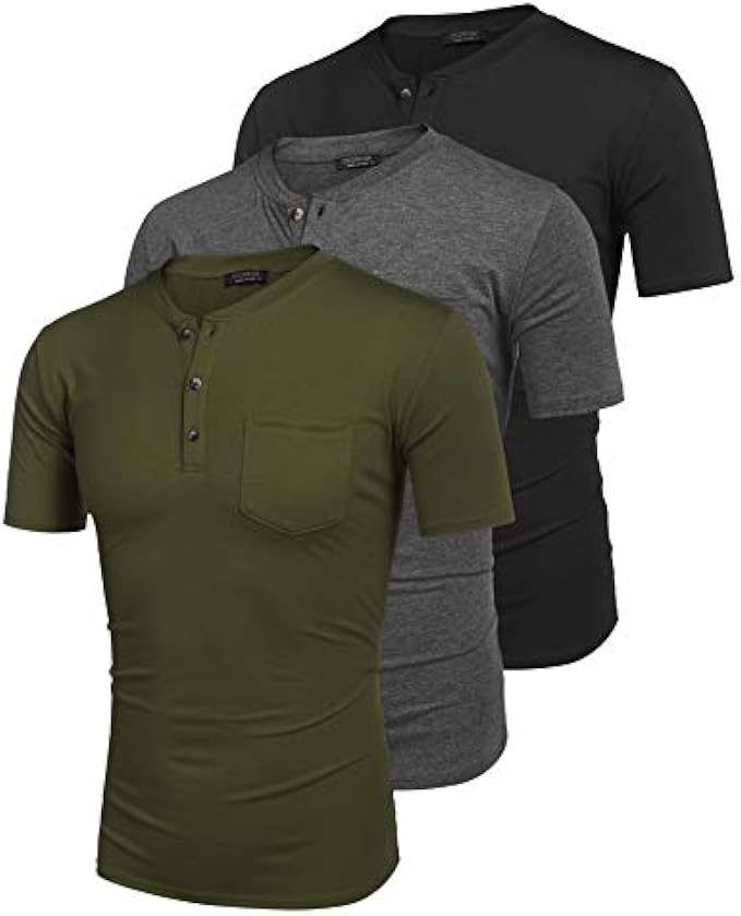 97% Polyester, 3% Spandex Imported Button closure Machine Wash 【Premium Fabric】: This henley shirts made from great fabric, lightweight, breathable and soft touch, do not shrink and fade, let you feel comfortable all time. 【Stylish Design】: Henley style,O-neck,short sleeve,one front pockets,featured 3 button detail,solid color, simple style 【Clothing Match】: These fashion casual short sleeve henley shirts could be easy to match with dress pants, slacks, chinos, and jeans,for a casual daily look. 【Occasion】: Perfect for spring, fall and summer, fashion style, formal work, business wear, everyday casual wear, beach wear and wedding,party,daily look etc 【Garment Care】Machine washable,Note: Men's casual fit t-shirts, US size. Please carefully refer to the size chart before ordering