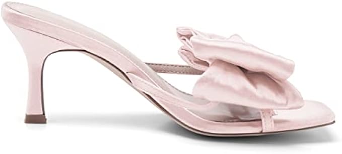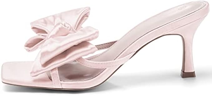 manmade sole Heel measures approximately 2.75 inches" ?【Features】Square open Toe, artificial leather, textile, stiletto, bow tie knot, flip flop, kitten heels heeled sandals.The bow decoration design, is a classic and versatile high-heeled sandals! ?【Design】 Heel Height: 2.75" (approx), Platform Measures: 0.25"(approx).The slip-on design is easy to put on and take off.The insole conforms to the natural curve of the foot and provides sufficient support for your feet.The soft inner lining and insole will not feel any pain even if you stand for a day. ?【Match】You can match it with jeans, shorts, T-shirts, skirts, dresses, and wear it for any daily or special occasions.Create the perfect look!The kitten heels design will lengthen the legs and improve the stability of walking. ?【Occasions】Whether it's a wedding, a party, an evening party, a cocktail, a church, a dance, a prom, home or work, or you are a bride, mother, lady, girl, office lady, teenager.They can be matched with these shoes, they are very comfortable and versatile! ?【Note】Please check the size information carefully before placing the order.Different monitors will present different colors, and there may be a certain color difference!We attach great importance to the opinions of our customers, you can contact us if you have any questions!