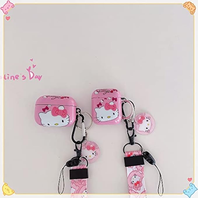 Fashion Design :Kawaii Pink Cartoon Kitty package include Cute Keychain 1pcs Keychain 1pcs Lanyard Keystrap that ,1pcs AirPods 1/2 Case,And Unique Style Design Breaks The Traditional Dull And Stylish Unique Charm
