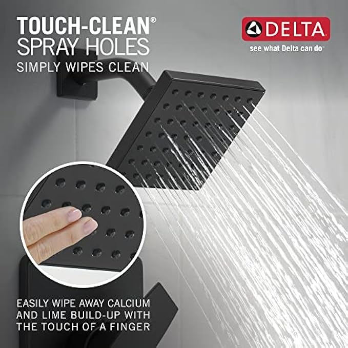 Delta Faucet Modern 14 Series Matte Black Shower Faucet, Triangle Shower Trim Kit with Single Spray Touch Clean Black Shower Head, Matte Black T14267-BL-PP (Valve not included)