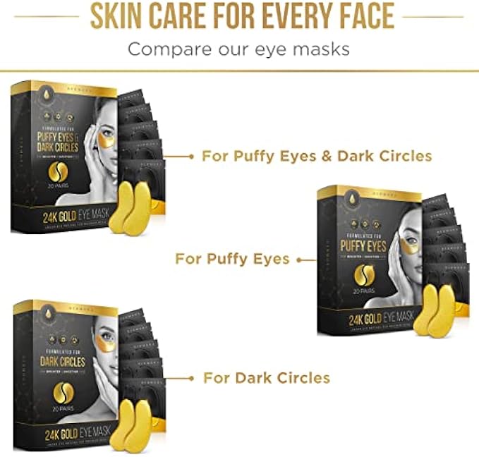 DERMORA 24K Gold Eye Mask Puffy Eyes and Dark Circles Treatments Look Less Tired and Refresh Your Skin, 20 Pairs