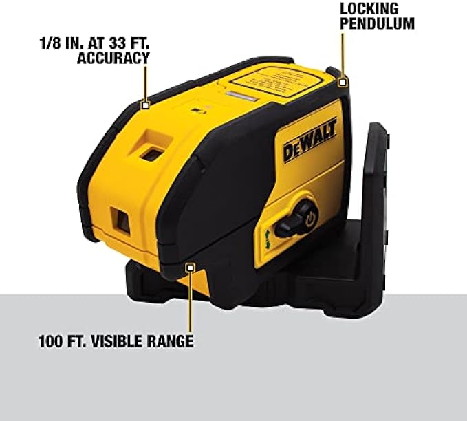 • DEWALT laser level has approximately 1/8-inch accuracy at 30ft