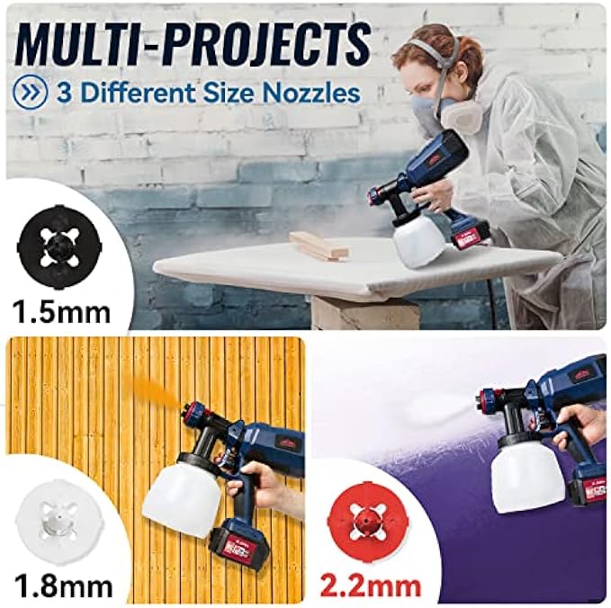 3 & 3 : Turn your next project into a masterpiece with our electronic paint sprayer. This powerful sprayer comes with 3 different nozzle sizes, 1.5mm and 1.8mm for precise painting and 2.0mm for thicker paints such as latex and chalk types. The adjustable air cups offer 3 painting patterns; circular, vertical and horizontal to help you achieve the professional look you want. Unleash your creativity and get the job done fast!