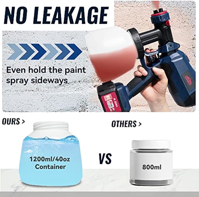 Let your creativity shine! Our paint spray guns provide the perfect tool for precise and consistent painting results. Features power pressure control to ensure efficient and even distribution of paint, allowing you to cover larger areas in less time. Plus, the 1200ml container ensures you don't have to worry about any unwanted paint spills. With the paint sprayer by your side, you can create your own masterpieces!