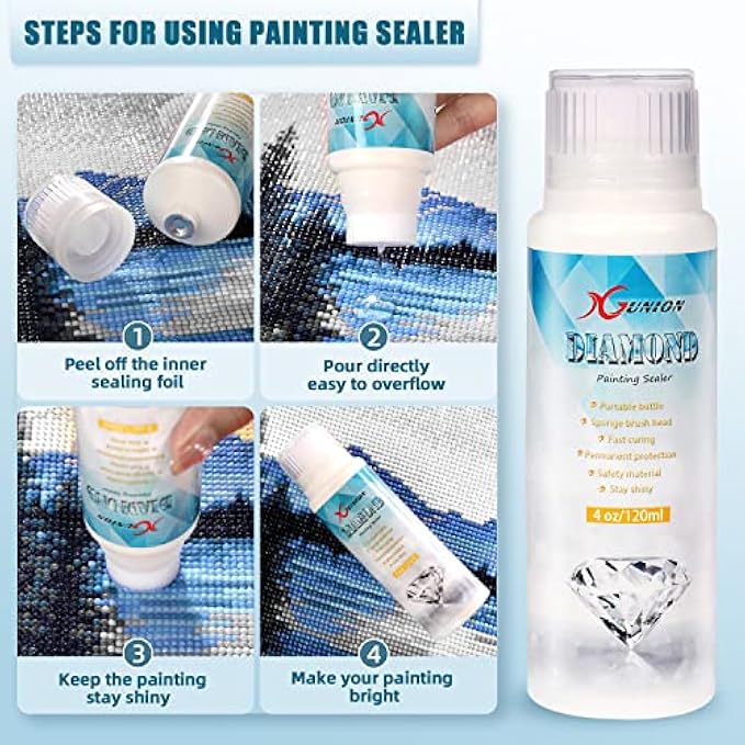 【Maintain Gloss Effect Permanently】: Our diamond painting sealer will keep all 5D diamond painting sets clean and bright in color. Don't worry about losing its luster over time.