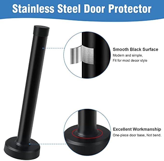 Door Stops, Wall Mount Door Stopper, Brushed Stainless Steel, Extra Long Doorstops with Sound Dampening Rubber Tip Bumper, Wall Door Protector 6 Inch 1 Pack Black