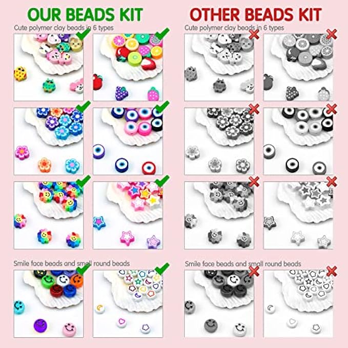 【Suitable Size】The diameter of these pony beads is 9mm, the height is 6mm, the hole is 4mm, the polymer clay beads are 10mm long with a 2mm hole, the letter beads size is 6*6mm, the hole diameter is 4 mm. All beads are individually stored in a 27 mesh plastic box for easy storage and portability. If parts are missing, please feel free to contact us.