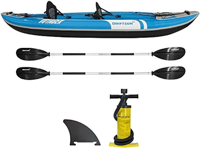INFLATES QUICKLY: The Driftsun Voyager 2 Person Inflatable Kayak inflates to a full size kayak (11' x 35” x 16”) in less than 5 minutes with included deluxe high flow double action hand pump.