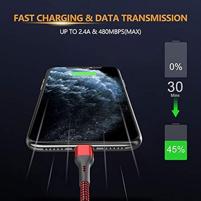 ღDifferent Colors,Multiple-Lengths: 4 Pack fast charging cords iphone have bright colors-Blue,Red,Orange,Green,easy to distinguish with other iphone charging cables.Multiple Lengths support various occasion of charging demands,nice item to share with family and friends.
