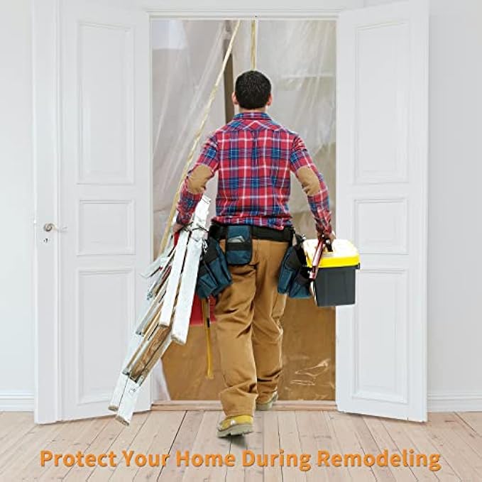 HIGH TRANSPORT AREA - Our plastic dust cover measures 10.16"W x 19.5"H, seals doorways up to 7.6"W x 18.8"H, and is wide enough to fit most standard door frames. Can be used for any doorway in the home, workshop, office, basement, closet and more. This is a dust-proof tool needed for home improvement, construction site. IMPORTANT: Please measure the door first!