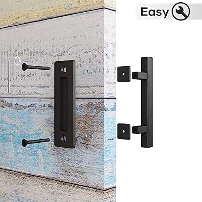 EaseLife 2 Pack 10" Sliding Barn Door Pull Handle with Flush Hardware,Double Sided,Heavy Duty,Rustic,Matte Black Powder Coated,Easy Install,Square