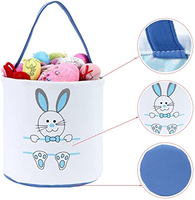2.【Lightweight and durable easter basket】:this easter bunny basket is made of premium quality cotton canvas, which makes it lightweight and durable for kids.