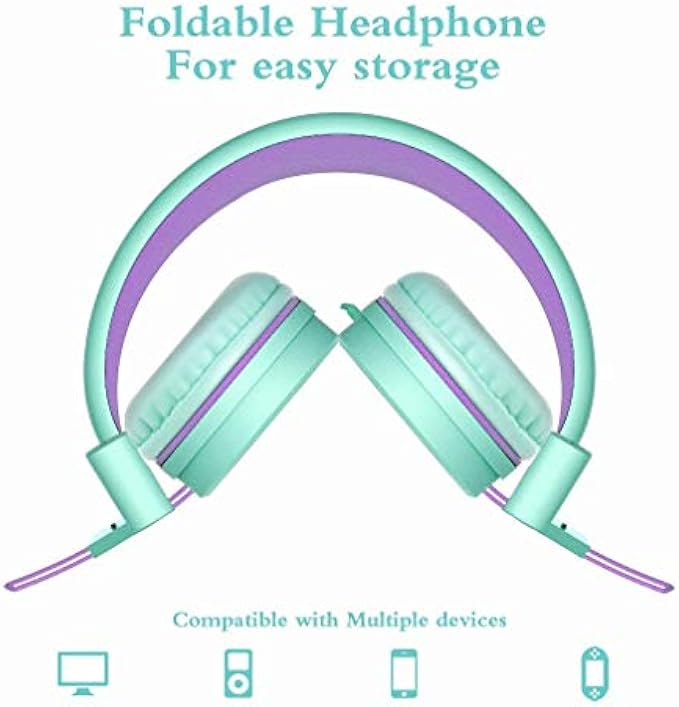 ELECDER i37 Kids Headphones Children Girls Boys Teens Foldable Adjustable On Ear Headphones 3.5mm Jack Compatible Cellphones Computer MP3/4 Kindle School Tablet Green/Purple