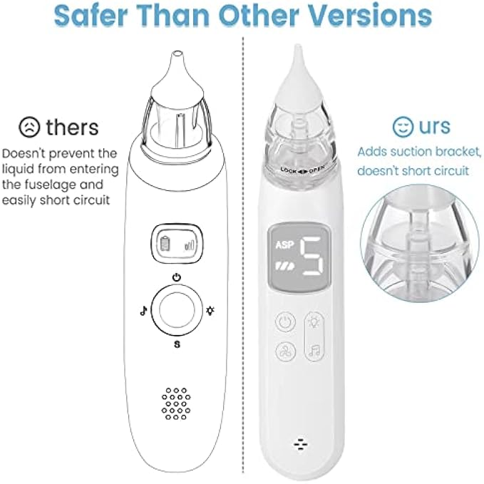 Electric Baby Nasal Aspirator: Our baby nose suction has ergonomic body design, comfortable and easy to grip. LCD screen display. Easy to use and clean.