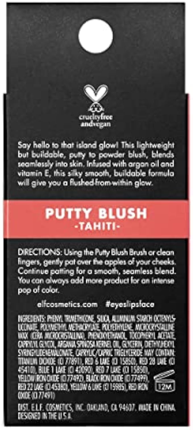 CREAM-TO-POWDER FINISH: Say hello to that island glow! e.l.f. Putty Blush is a velvety, lightweight but buildable putty-to-powder blush that melts into your skin for a natural glow.