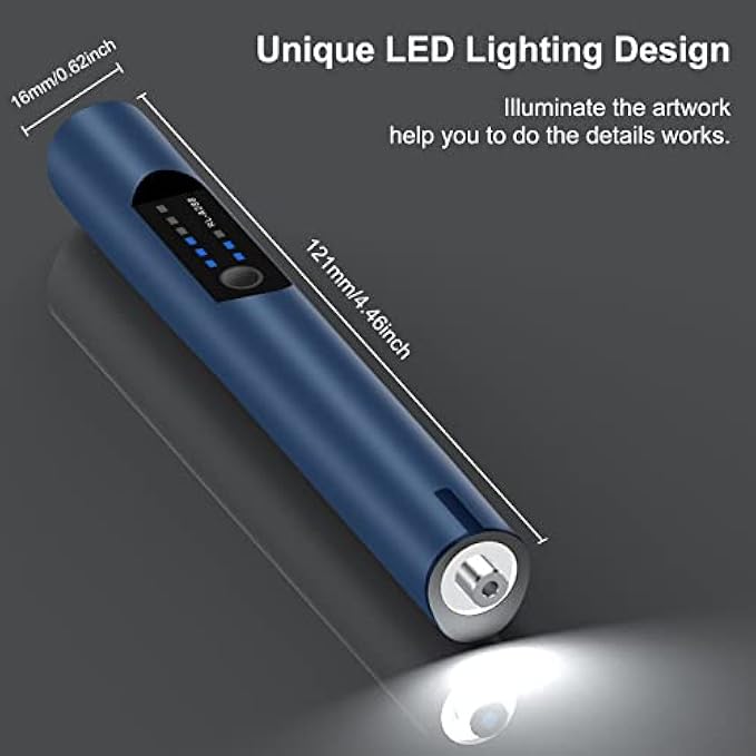 [Unique LED Light Design] - The electric engraving pen tip part has a built-in LED light, which can help you see the details of the engraving machine clearly, making the finished artwork or jewelry more perfect. Unlike other older engraving pens that required small screws to hold the bit in place, this new pen inserts and locks right in.