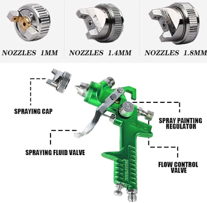 · MORE PRACTICAL: Equipped with 3 different size nozzle spray guns, 3 knobs for full adjustment: liquid, mode and air pressure control.