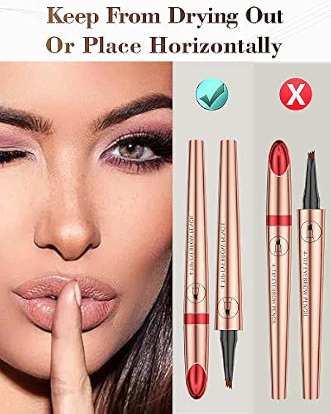 WATERPROOF & LONG-LASTING LIQUID BROW PEN - These 4 Micro-Fork Tips eyebrow pen is adapted with long-lasting formula to be waterproof, transfer-proof and smudge-proof. You can always maintain a beautiful makeup with this waterproof eyebrow pencil even through in rain and water sports. Notes: Do not rub your eyebrows too hard.