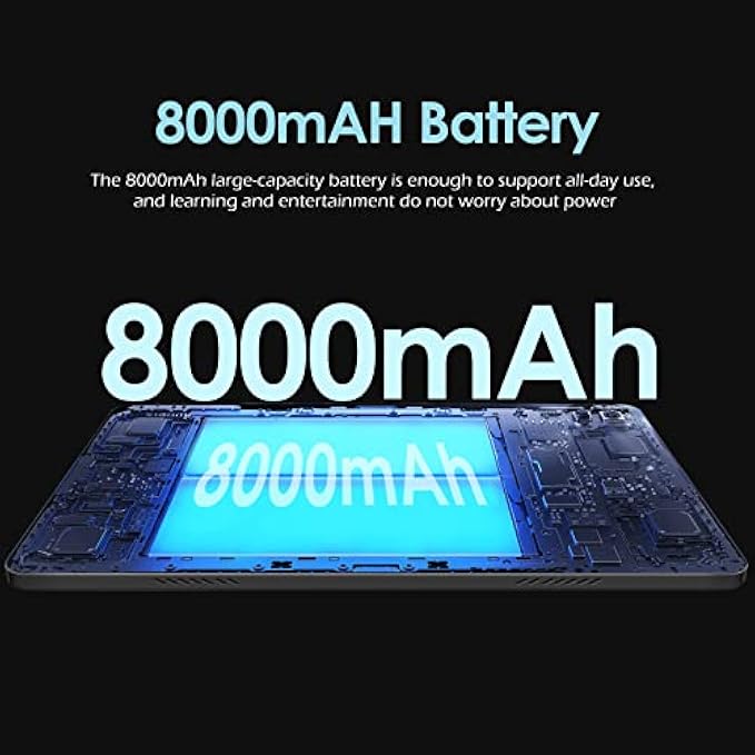 【Powerful battery life】8000mAh battery combined with SC610 1.6 GHz Octa-Core processor, lower power consumption, audio and video entertainment, games and learning, office meetings, fearless use of any scene, can be continuous 720 hours of standby, 20 hours of calls, 24 hours of MP3 music, 6-8 hours of online video, and with Type-c charging cable, so you can use the tablet with confidence.