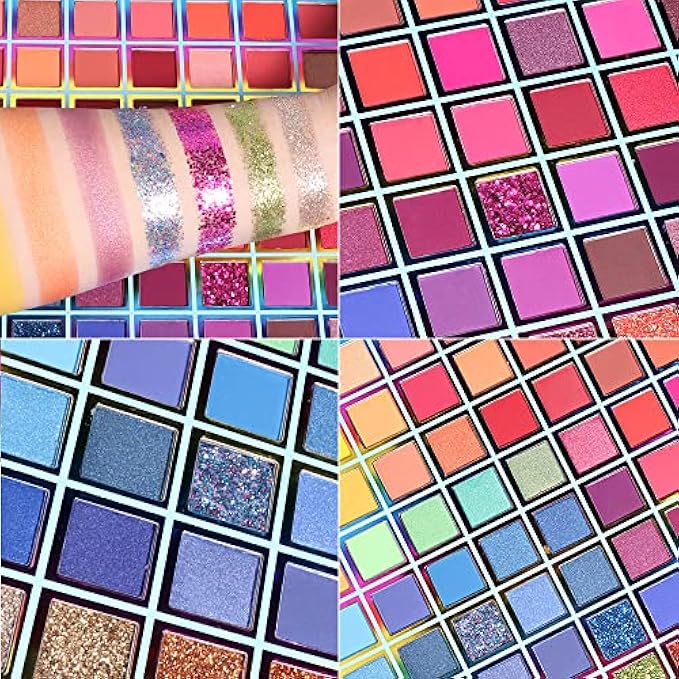【88 Color Palette 】 The amazing Rainbow eyeshadow palette contains professional cool and warm colors of paint and tones. Available in a variety of textures: soft, smooth matte, sparkling pressed pearls and dazzling metallic glitter. This palette of rich hues features versatile hues that can be mixed and layered to create an endless look.