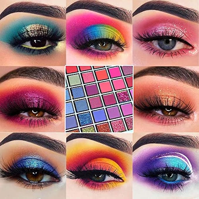Multiple ways to use Each shadow is buttery,supper pigmented and waterproof. The eyeshadow shades can be used individually or together for a dramatic look. They are blendable with a mix of matte, shimmer, and metallic finishes that can be mixed and matched in any number of ways. The pigmentation ensures the color is vibrant and long-lasting. Suitable for both makeup beginners and makeup pros.