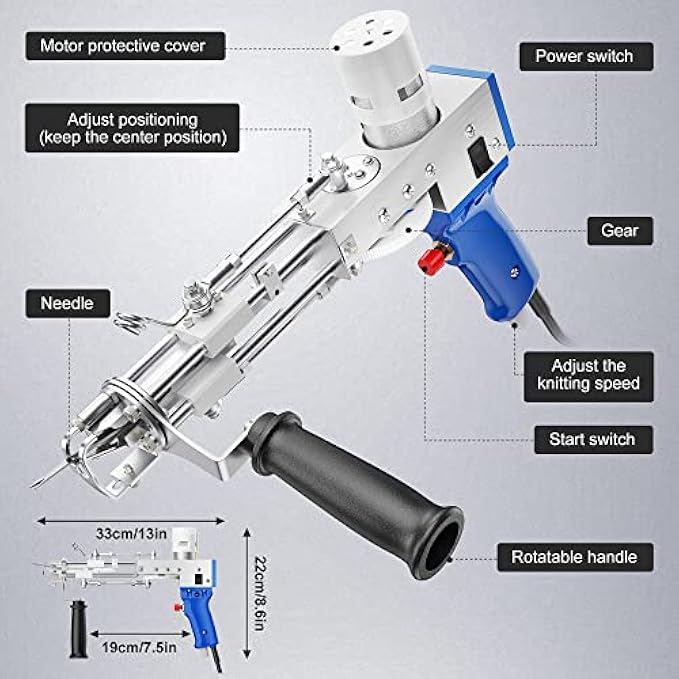 【Good Performance】This knitting gun has a very wide range of applications. It can be used for weaving different types of carpets. The motor speed can reach 2400RPM or higher for high-speed tufting, which improves work efficiency. At the same time, it is quieter and will not make a loud noise and almost all yarns are available, it is advanced special equipment that can greatly improve work efficiency in modern production