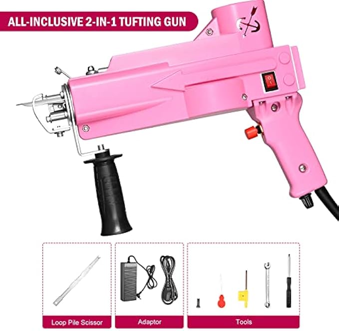 WIDELY APPLICATION: The 2 in 1 tufting gun is easy to operate, easy to master, long life, less trouble.The machine is portable ,it also produced a huge change in the traditional hand-made carpet,can weave many types of fancy,at the same time more efficient