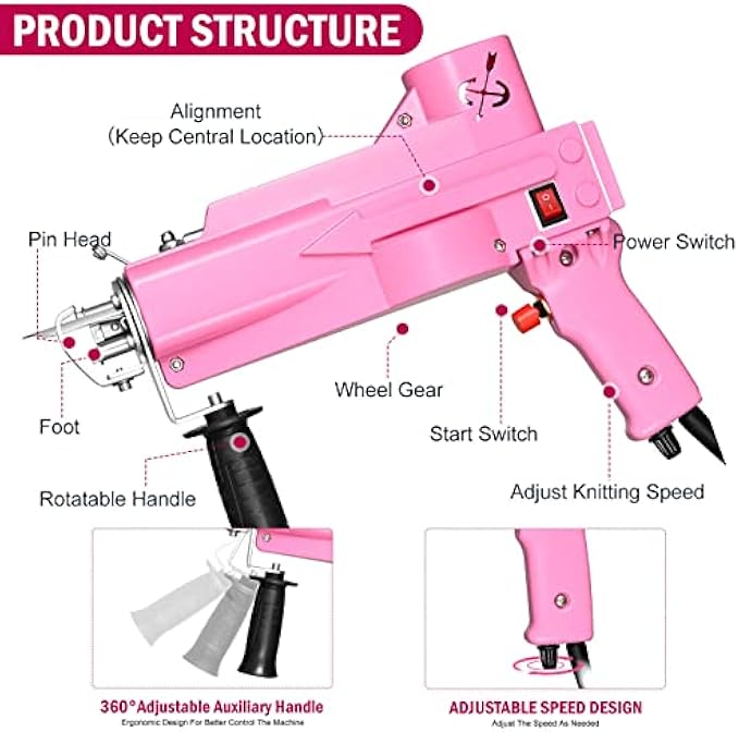 HIGH EFFICIENCY: The speed of this rug gun can reach 5 to 40 stitches per second, which increases the production efficiency by 80 to 150 times, which saves more manpower and time than hand knitting, whether you are a newbie or an expert, will both be suitable to use