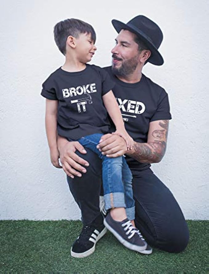 Daddy and me matching set men's t-shirt + toddler shirt; Fixed it, broke it. Funny dad and child matching outfits for fix-it-all dads