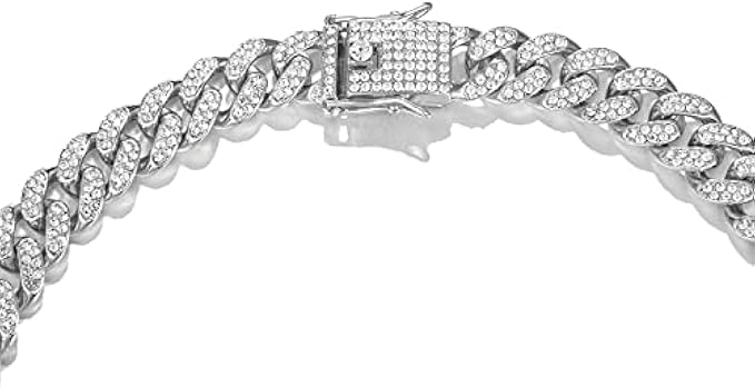 Material:High quality gold silver plated chain necklace with over 300 rhinestones,Hand-made process to ensure product can be precious and shine more,all the rhinestones are hand inlaid by craftsmen,cuban link necklace it's nickel-free, lead-free and harmless to health Cuban Necklaces chain length: 8.5inch,18inch, 20inch, 22inch, 24inch,Chain width:13mm,Everybody size are different, we suggest you tie a string and measure it,after you can choose fit your size Iced Out Cuban Link Chain Design: This is one of the most popular and trendy chain necklace.fashion design for hip hop lover,sturdy and simple,necklace chain made with 18k gold and silver plating.If you take a look at chain I guarantee diamond cuban link chain is part of your collection,and when you have it, they will put you in the spotlight on any occasion PERFECT GIFT FOR HIM OR HER- For yourself or someone special, this timeless and versatile chain is the ideal gift for men and women with a cool sense of style. This is the perfect accessory for any outfit,suit for Party, Anniversary, Valentine Gift, Mother's Day ,Father Day gift ,Christmas Gift ,Graduation gifts,friend gifts What You Get:cuban necklace chain with box,friendly customer service. if you have any question please contact us we will respond within 24 business hours
