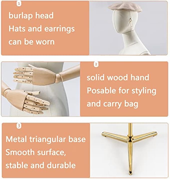 New Upgraded Style: The mannequin is Constructed by superior ABS plastic, Including head, solid wood arm, metal bracket and triangular base base, The sturdy mannequin torso frame can be matched with all kinds of clothing. Perfect decoration between dress form and home decor.