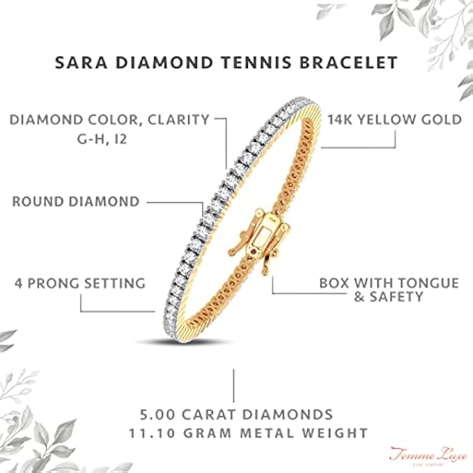 ⚡FINEST QUALITY MATERIALS: Fashioned with 5.00 carat Diamonds (Color: G-H, Clarity: I2) and solid 14K Yellow Gold. Each diamond is hand-cut to perfection by master craftsmen to maximize that dazzling sparkle we love! ⚡INDEPENDENT LAB CERTIFIED: Each diamond in this jewelry is certified by SGL-Labs, a 3rd party, international diamond grading laboratory. Certified diamonds come with a quality you can trust, helping you buy your diamond jewelry, worry free! ⚡“Joy Through Jewelry”: To us, jewelry is more than a beautifully crafted ornament made of precious metal, diamonds, and gemstones. It is an expression of celebration. For centuries, people would overturn to jewelry to express their love and celebrate life. Everyday gives us reasons to celebrate, whether big or small. Be it an occasion or simply a new day. In these moments, jewelry brings a smile to our heart and soul. And at Femme Luxe, we strive to make such smiles happen. ⚡GIFTABLE JEWELRY: All Femme Luxe jewelry is carefully packaged in an attractive, branded gift box, ready to charm the wearer. Best gift choice for Birthday, Anniversary, Holidays, Thanksgiving, Graduation, Christmas, Valentine's Day, Mother's Day, and any other occasion. ⚡SHIPS FROM USA, EASY EXCHANGE AND RETURNS - CUSTOMER SATISFACTION ASSURED: We are based in NYC, USA and all our products ship from USA, guaranteed. If you face any issues with your jewelry, just contact us for absolutely any concern and you will receive trusted, quick customer support, eager to resolve your query or issue.