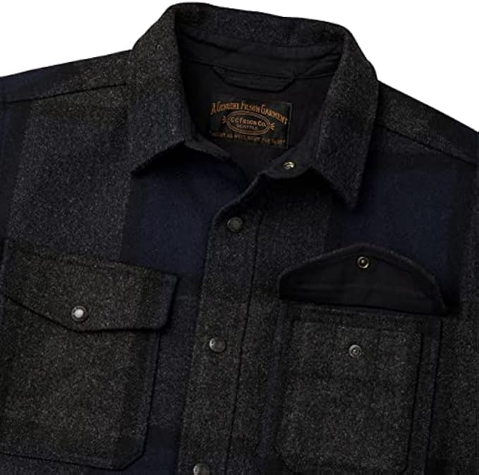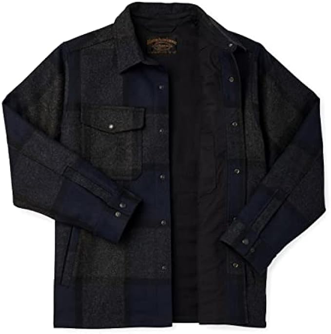 Filson Lined Mackinaw Wool Jac-Shirt Navy/Charcoal Plaid (as1, alpha, m, regular, regular, Large)