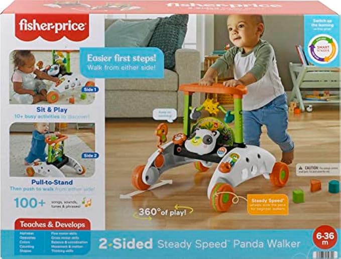 Fisher-Price 2 面稳定速度熊猫学步车,互动婴儿散步玩具,带活动和学习歌曲 [亚马逊独家]