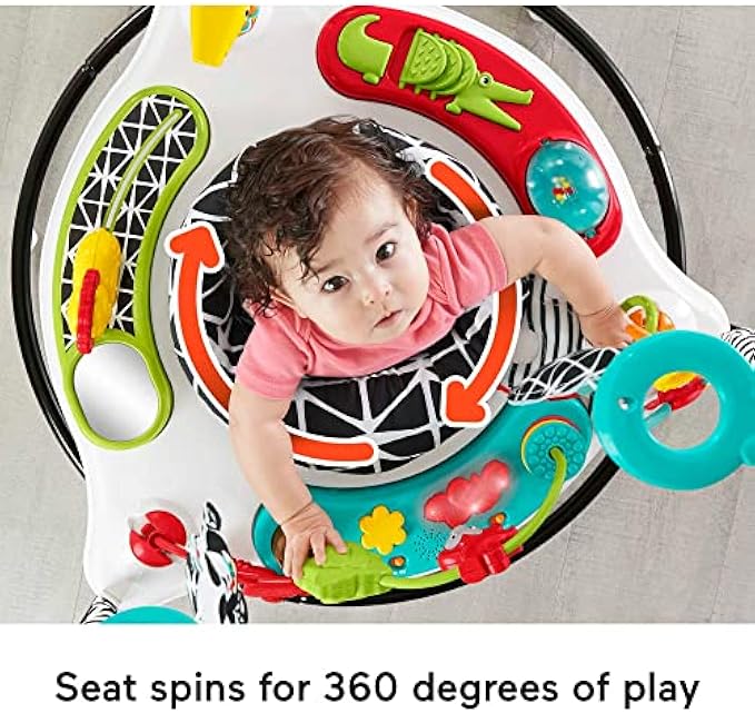 Freestanding infant jumper with a seat that spins for 360 degrees of play.