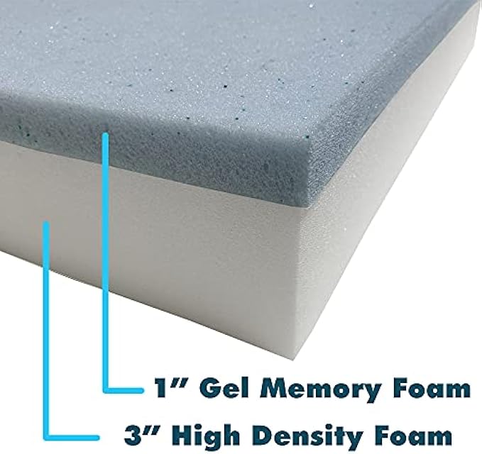 Foamma 4" x 24" x 72" Gel Memory Foam, High Density Foam Base, Cooling Pressure Relief, Chair Cushion Foam for Dining Chairs, Wheelchair Seat Cushion, Cushion and Seat Repair, Made in USA!