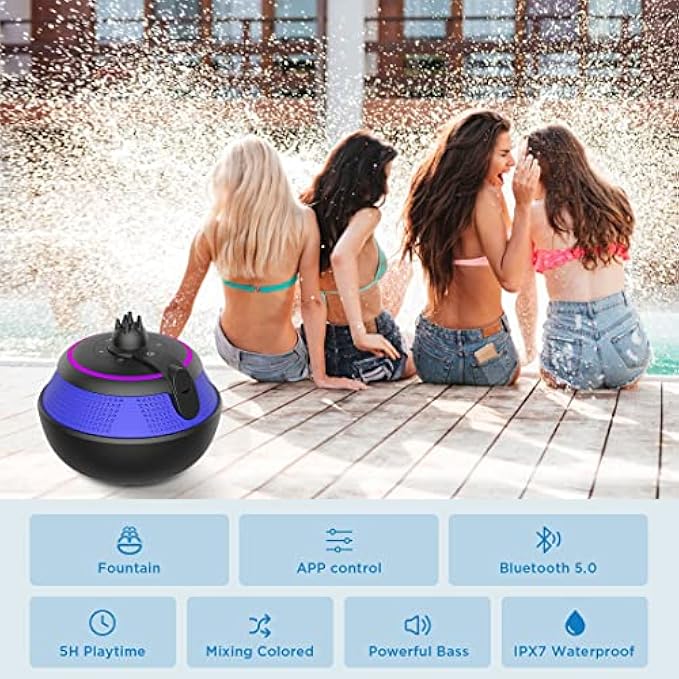 Fountain speakers suitable for gift giving: Fountain speakers can be free from time/crowd/venue restrictions. All year round, babies, children, family, friends can use this waterproof bluetooth speaker in the garden, bathroom, office, seaside, swimming pool, outdoors.