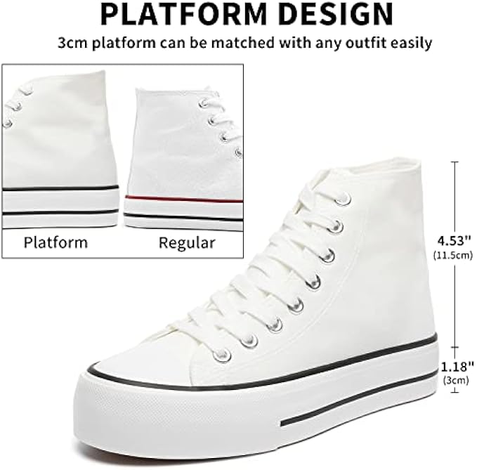 【Comfortable】: Women's platform sneakers use breathable canvas upper,it keeps your feet dry and stay comfort all the time.