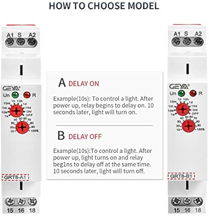 GAEYAELE GRT8-A1 B1 Time Delay Shutdown Relay Electronic 16A AC230V or AC/DC12-240V with CE CB Certification (GRT8-B1,AC/DC12V-240V)