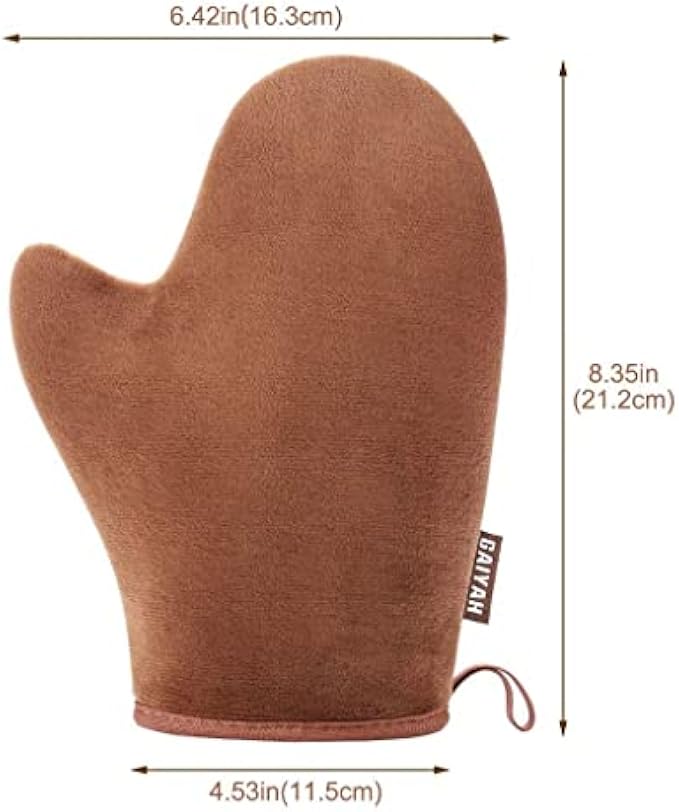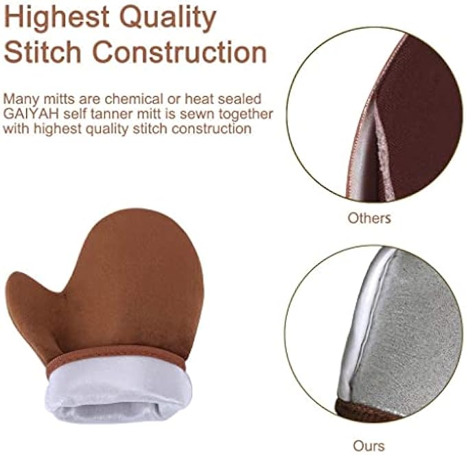 【HIGHEST QUALITY STITCH CONSTRUCTION】GAIYAH self tanning mitten is carefully sewn together with highest quality stitch construction. This creates a mitt which will outlast any on the market in durability and use.