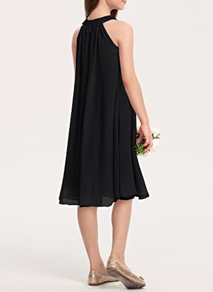 ❤Features: Flowy Chiffon Junior Bridesmaid Dress for girls casual swing style, halter neckline and cold shoulder design, make your girl more attractive.Two layers of the dress, one layer chiffon and one layer lining, knee length,back zipper closure.Little/big girls summer dresses sleeveless clothes for girls