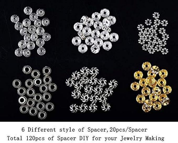 Accessories: 20 gold rhinestone round crystal beads. 20 silver rhinestone crystal beads. 4 different designs of silver zinc alloy Tibetan beads, 20pcs each design, 4.5m 1.0mm black elastic cord, 10m 1mm white elastic stretch polyester crystal cord. 1pc Bead Scissors (Rainbow, Red, Blue or Black), 1pc Rusty Antifreeze Gold Wire. These jewelry making accessory tools are the best gift for jewelry DIY.
