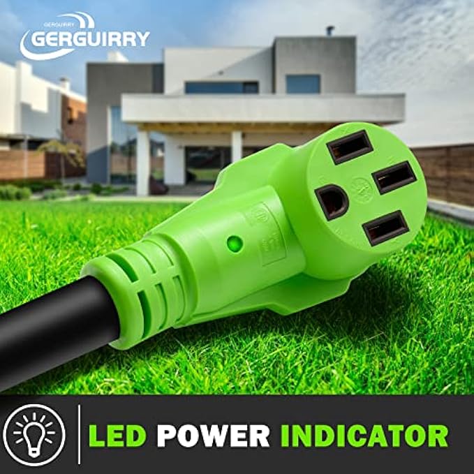 Gerguirry 50FT 50 Amp RV Power Extension Cord, Heavy Duty 6/3, 8/1 STW AWG Gauge Cord with LED Power Indicator, NEMA 14-50P to 14-50R with Cord Organizer for Trailer Motorhome Camper