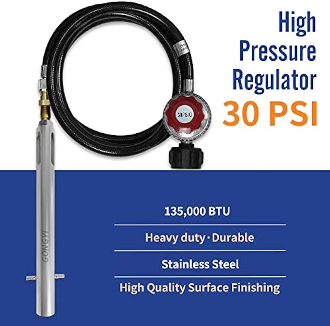 Professional design of US standard propane tank, including air hose and regulator (input QCC type, output 5/8 inch), can be directly connected to US standard propane tank.