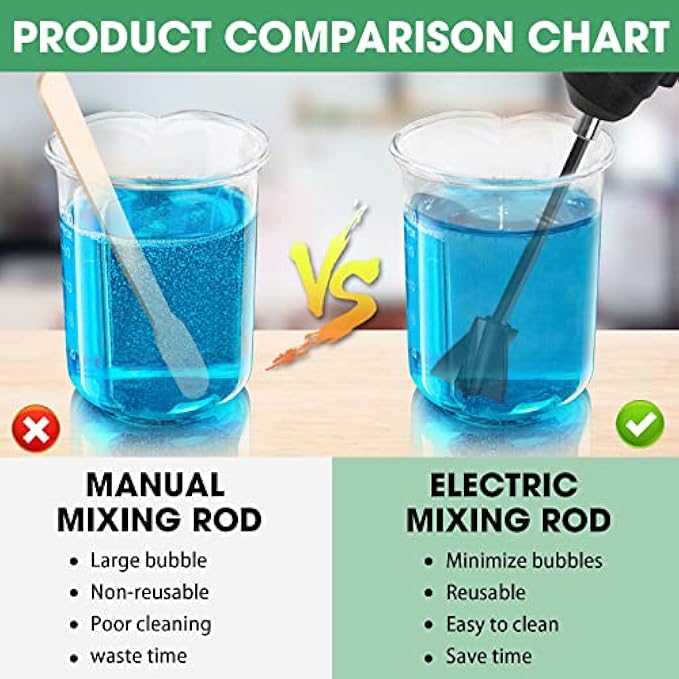 [Multiple Uses] - Our lightweight resin mixer is portable and can be used for various projects. Suitable for thin and thick liquids such as epoxy resin, ceramic glaze, paint, stain, resin color, resin crafts, latex, powder paint, glass epoxy mold, mica powder and pigment powder, resin art DIY glass lovers, jewelry casting , craft supplies, liquid materials, resin supplies, jewelry resin casting molds.