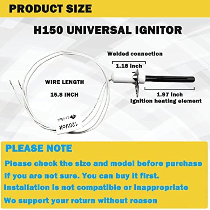Excellent design: The H150 Universal igniter has a durable nitride construction and is equipped with a universal mounting bracket to increase the service life of the igniter. It has a large ignition area and is equipped with a universal mounting bracket for easy installation and consistent ignition.