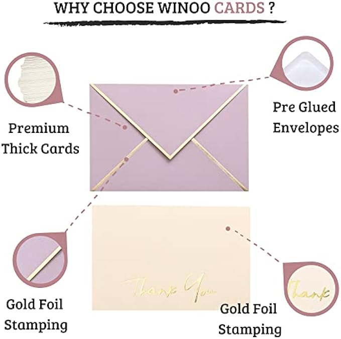 Heavy Duty Thank You Cards with Envelopes - 36 PK - Gold Thank You Notes 4x6 Inches Baby Shower Thank You Cards Wedding Thank You Cards Small Business Graduation Funeral Bridal Shower (Dusty Pink)