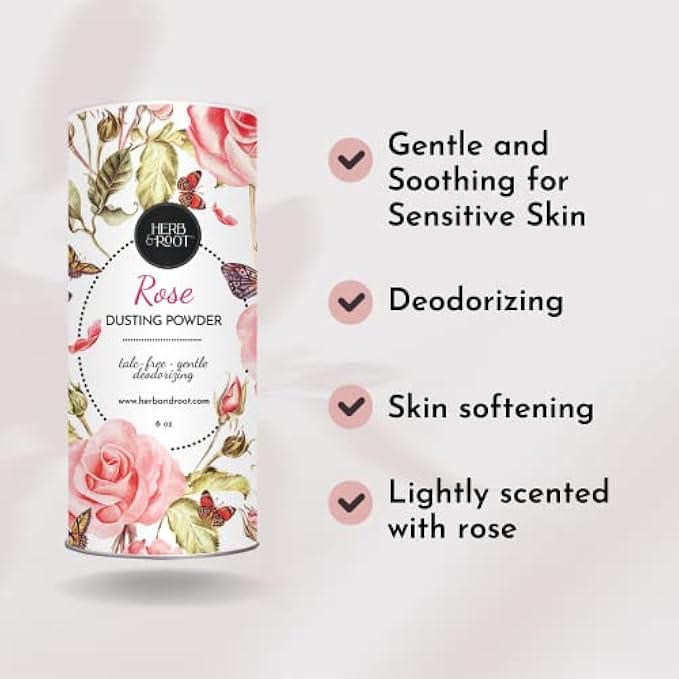 Herb & Root Rose Perfumed Body Dusting Powder for Women, Talc Free, Anti-chafing, feminine powder, dusting powder, 6 oz