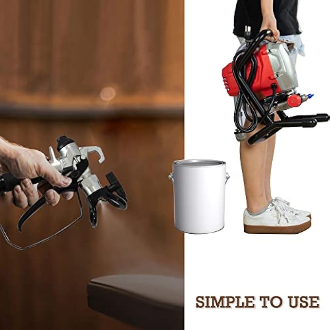 This airless paint sprayer is designed for professional painting contractors and contractors. Can handle any painting job in your home. This airless sprayer is suitable for painted materials, including water-based paints and oil-based interior and exterior paints.